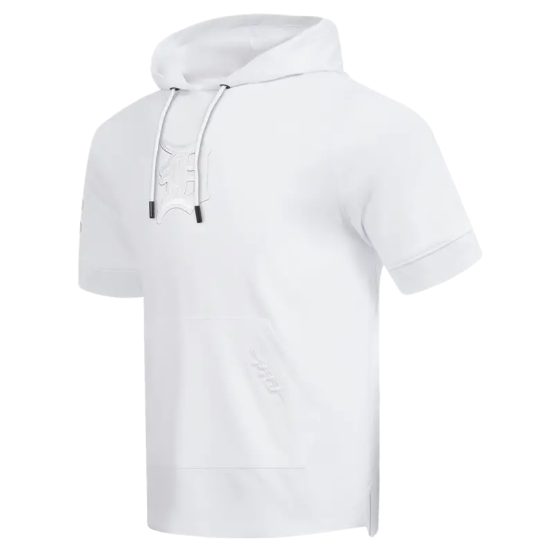 MLB DETROIT TIGERS WHITE OUT MEN’S SHORT SLEEVE PULLOVER HOODIE (WHITE)