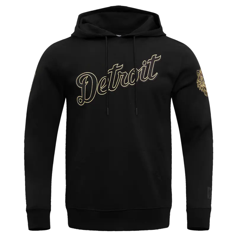 MLB DETROIT TIGERS BLACK \u0026 GOLD DOUBLE KNIT PULLOVER HOODIE (BLACK)