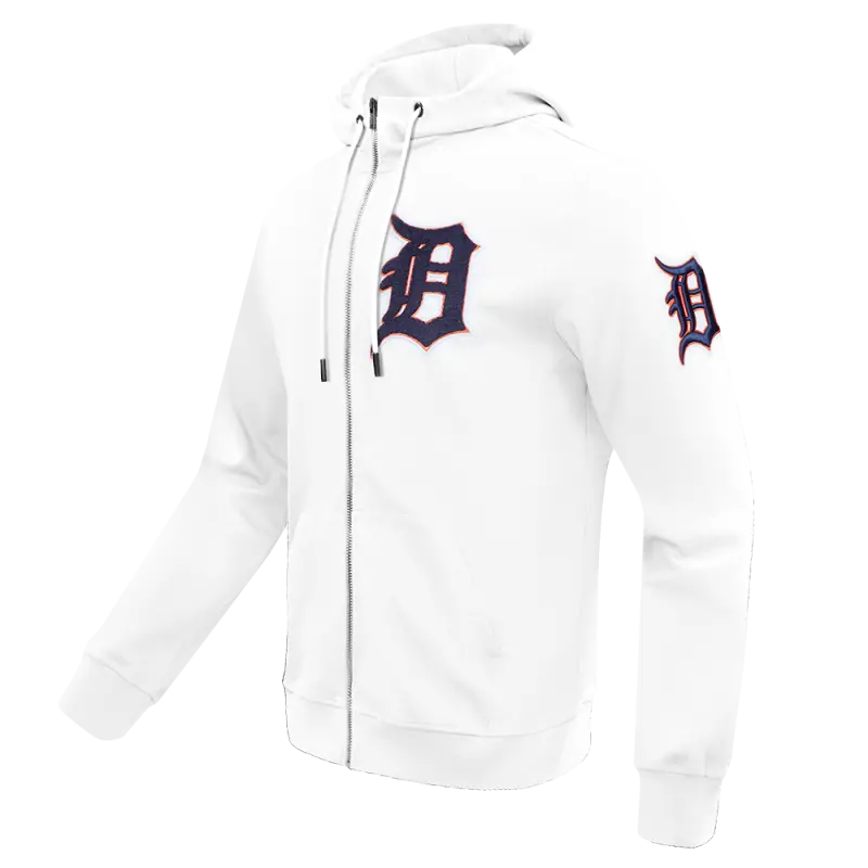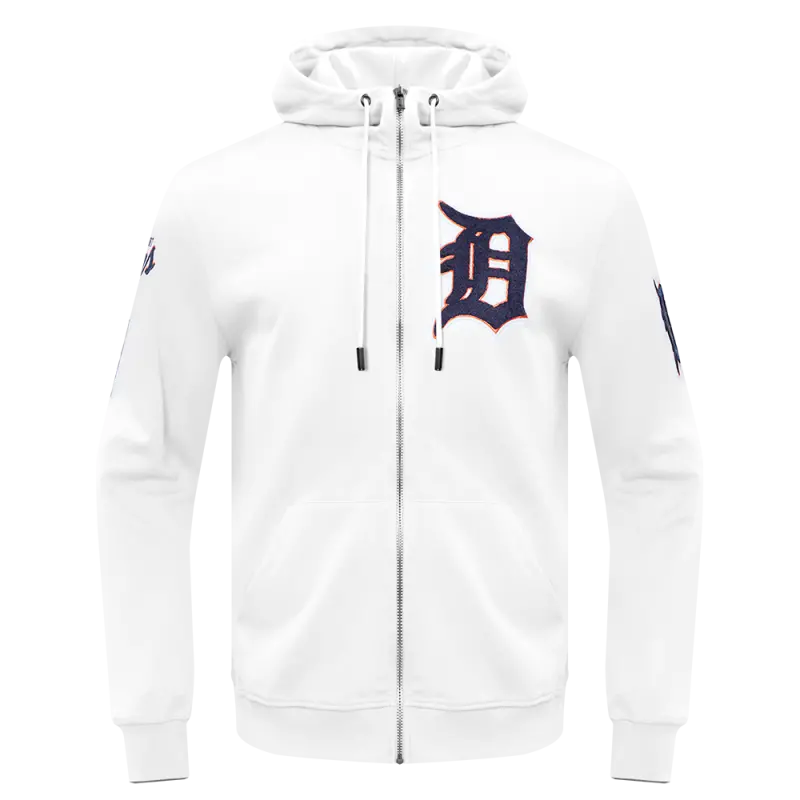 MLB DETROIT TIGERS CLASSIC CHENILLE MEN’S FULL ZIP PULLOVER HOODIE (WHITE)