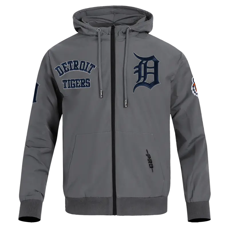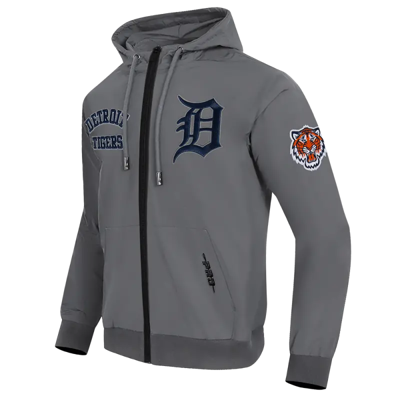MLB DETROIT TIGERS CLASSIC WIND SUIT MEN’S WOVEN FULL ZIP PULLOVER HOODIE (GRAY)
