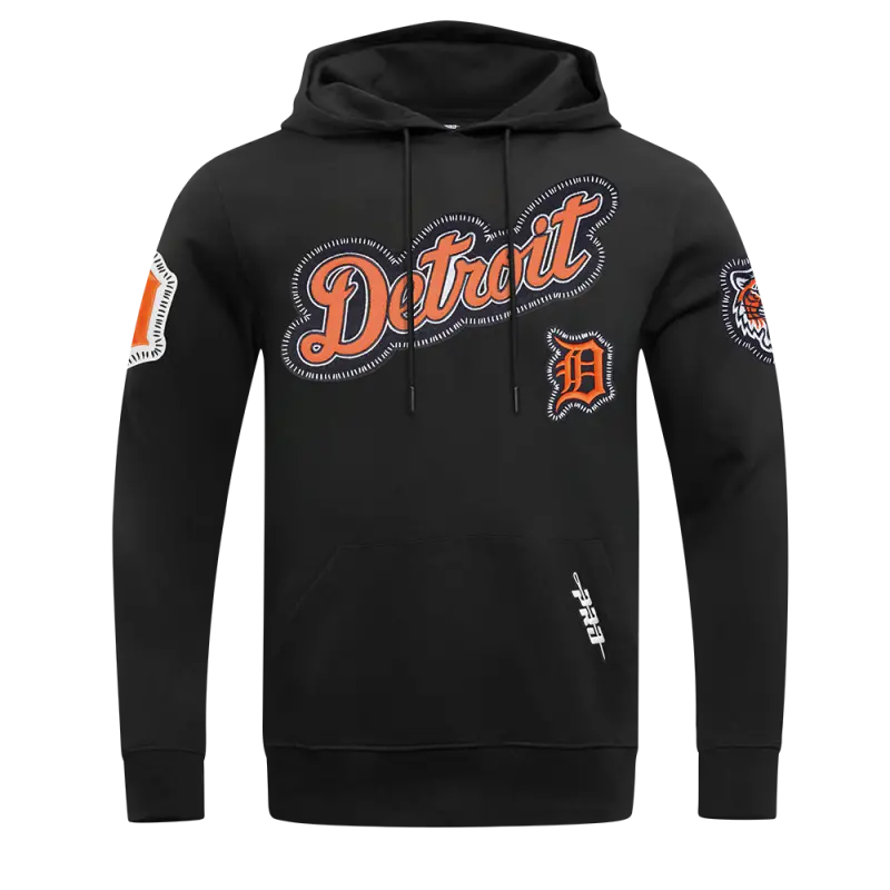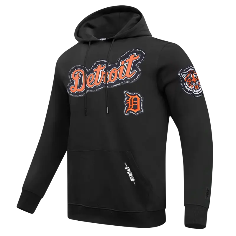 MLB DETROIT TIGERS DIY PICK STITCH MEN’S DOUBLE KNIT PULLOVER HOODIE (BLACK)