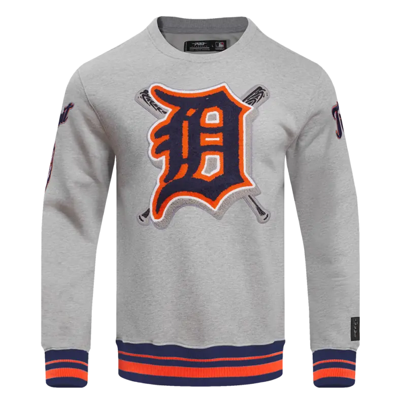 MLB DETROIT TIGERS MASHUP MEN’S RIB CREWNECK (HEATHER GREY\/MIDNIGHT NAVY\/ORANGE)