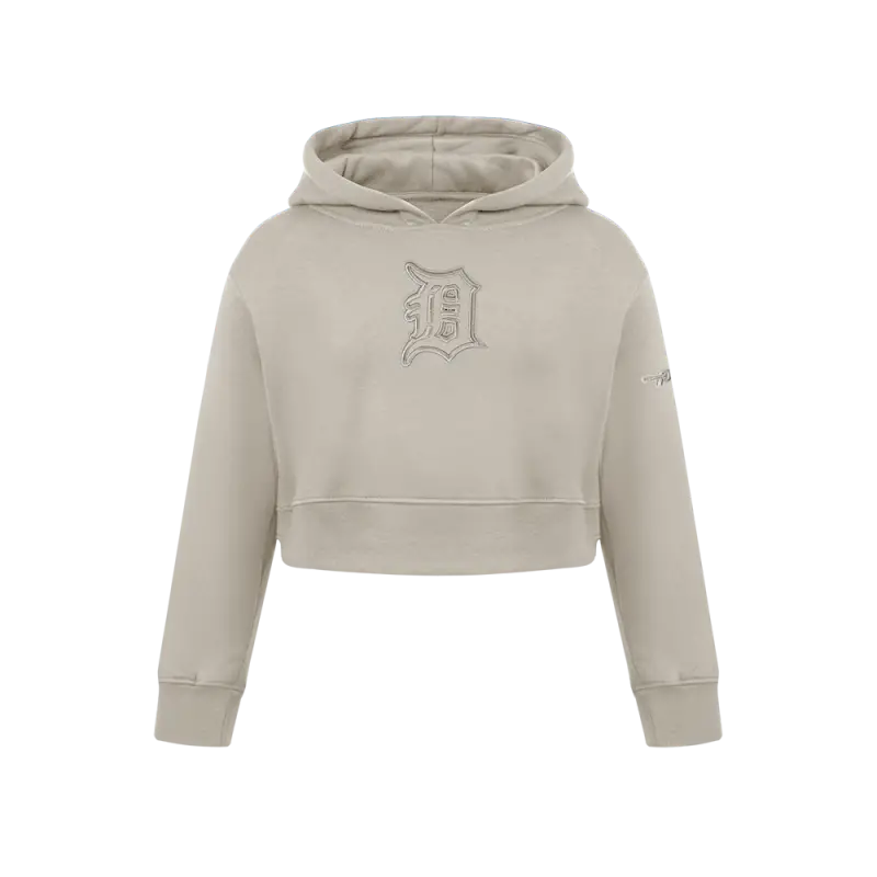 MLB DETROIT TIGERS NEUTRAL CROPPED WOMEN’S PULLOVER HOODIE (BLACK)
