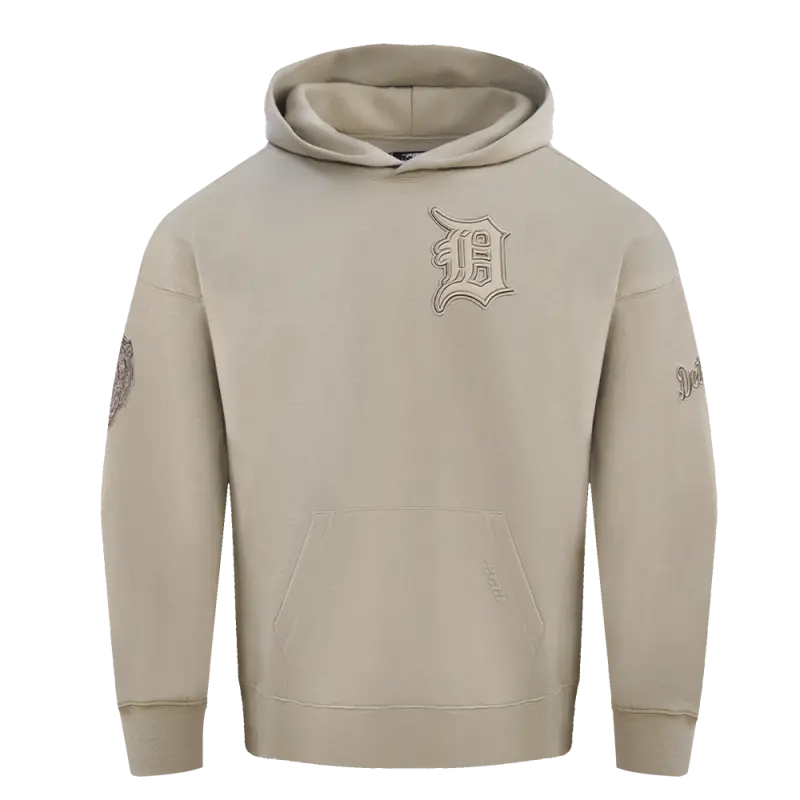 MLB DETROIT TIGERS NEUTRAL DROP SHOULDER MEN’S PULLOVER HOODIE (TAUPE)