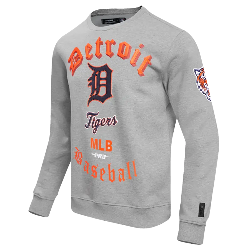 MLB DETROIT TIGERS OLD ENGLISH MEN’S CREWNECK (HEATHER GREY)