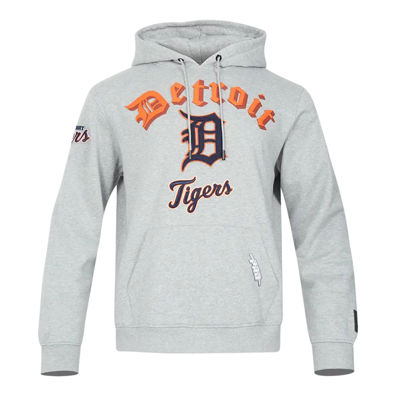 MLB DETROIT TIGERS OLD ENGLISH MEN’S PULLOVER HOODIE (HEATHER GREY)