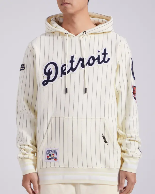 MLB DETROIT TIGERS PINSTRIPE RETRO CLASSIC RIB FLC PO HOODIE (EGGSHELL\/ GREY)