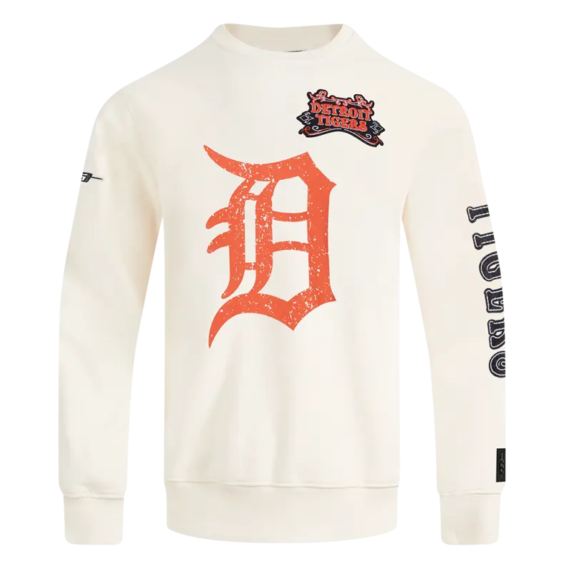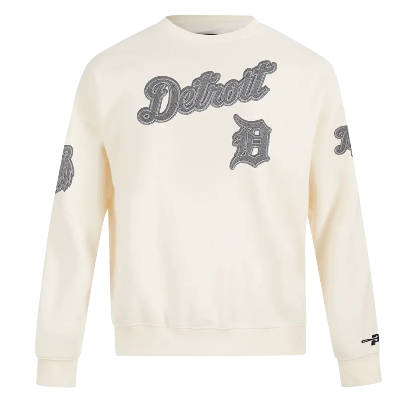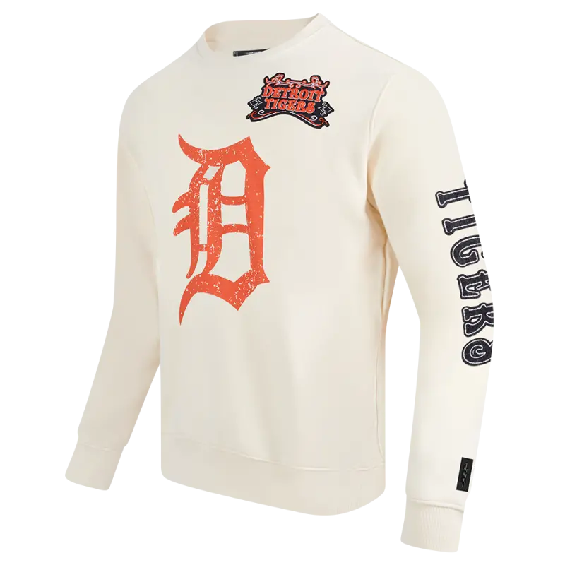 MLB DETROIT TIGERS REVERSE FRENCH TERRY MEN’S DROP SHOULDER FLEECE CREWNECK (EGGSHELL)
