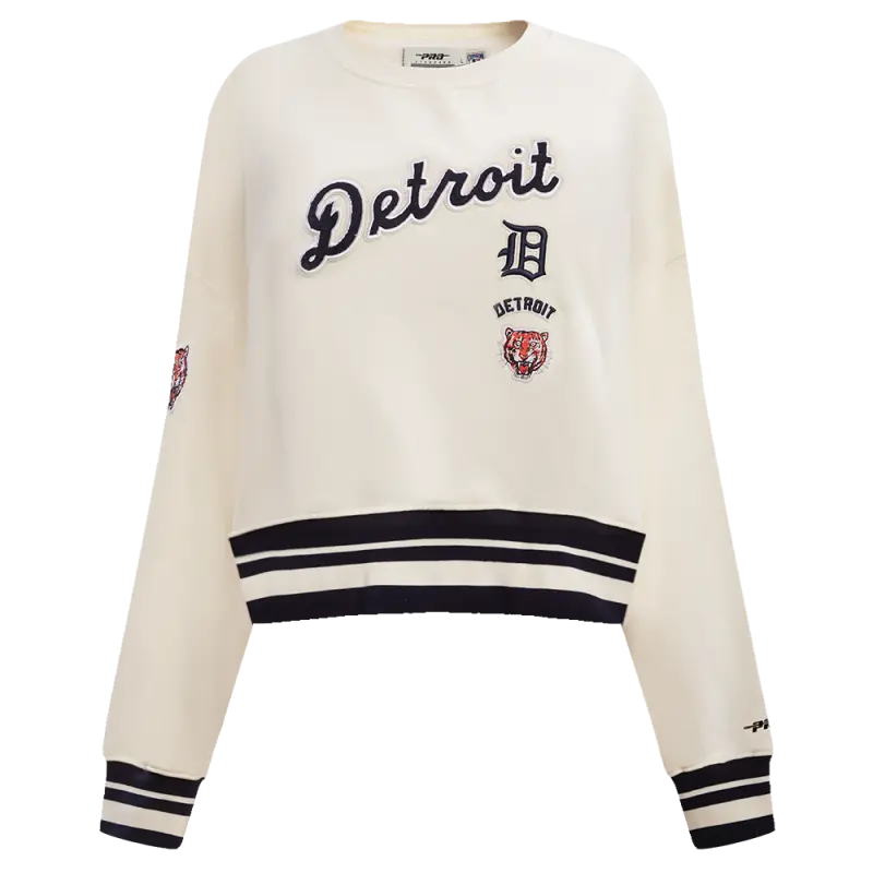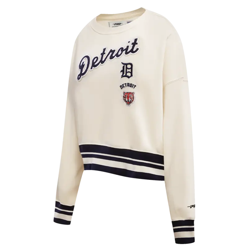 MLB DETROIT TIGERS RETRO CLASSIC WOMEN’S RIB CREWNECK (EGGSHELL\/MIDNIGHT NAVY)