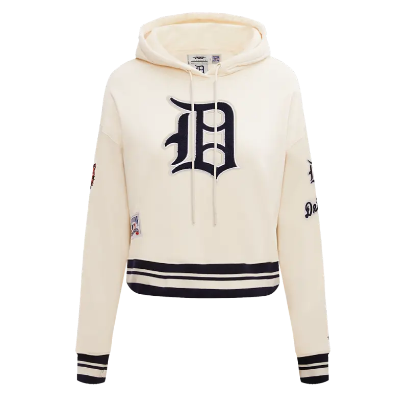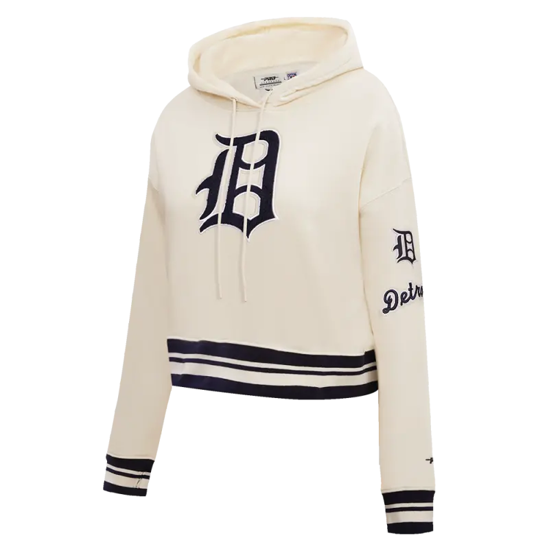 MLB DETROIT TIGERS RETRO CLASSIC WOMEN’S RIB CROPPED PULLOVER HOODIE (EGGSHELL\/MIDNIGHT NAVY)