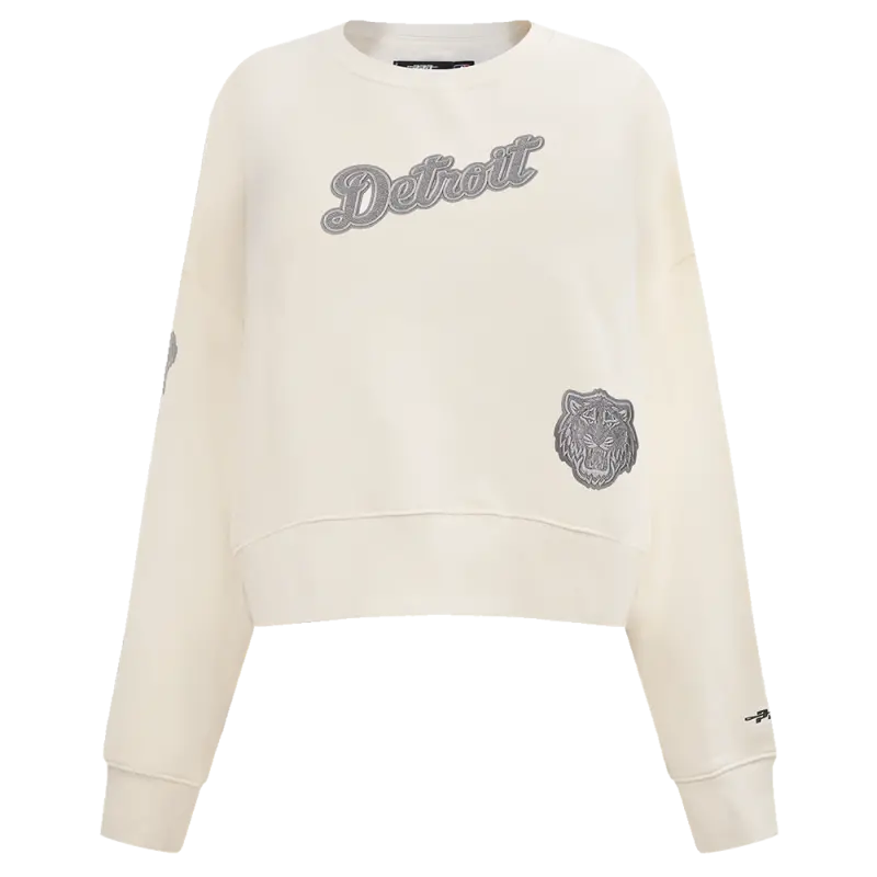 MLB DETROIT TIGERS REVERSE FRENCH TERRY WOMEN’S FLEECE CREWNECK (EGGSHELL)