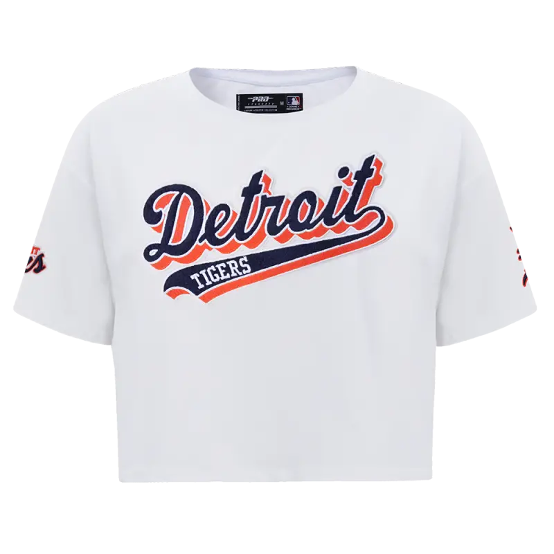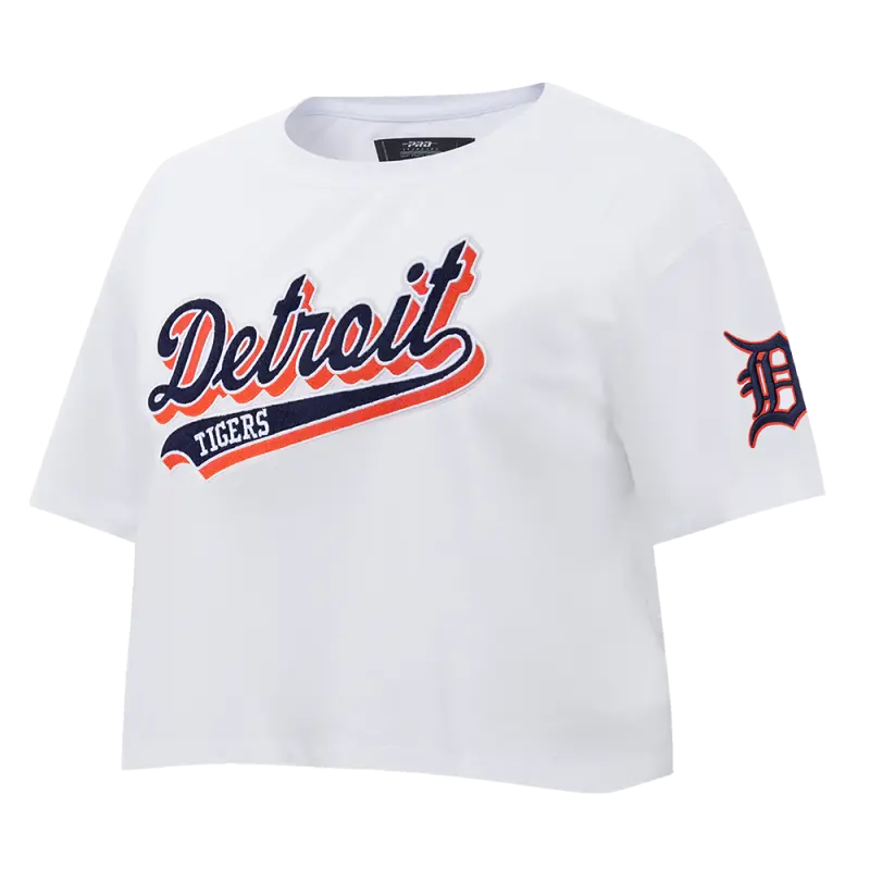 MLB DETROIT TIGERS SCRIPT TAIL WOMEN’S SINGLE JERSEY BOXY TOP (WHITE)